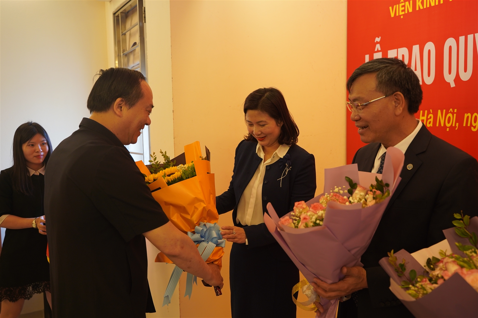 Viện trưởng viện kinh tế và phát triển DN trao quyết định cho 3 đồng chí