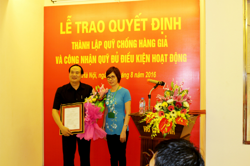 Sáng ngày 9/8/2016 tại Hà Nội đã diễn ra Lễ trao Quyết định thành lập Quỹ Chống hàng giả và công nhận Quỹ đủ điều kiện hoạt động. Tham dự Lễ trao Quyết định có ông Nguyễn Trọng Tín - Phó Cục trưởng Cục Quản lý thị trường, Bộ Công thương; đại diện của Vụ Tổ chức Phi chính phủ, Bộ Nội vụ; ông Nguyễn Đức Lợi - Chủ tịch Hội đồng Quản lý Quỹ Chống hàng giả.