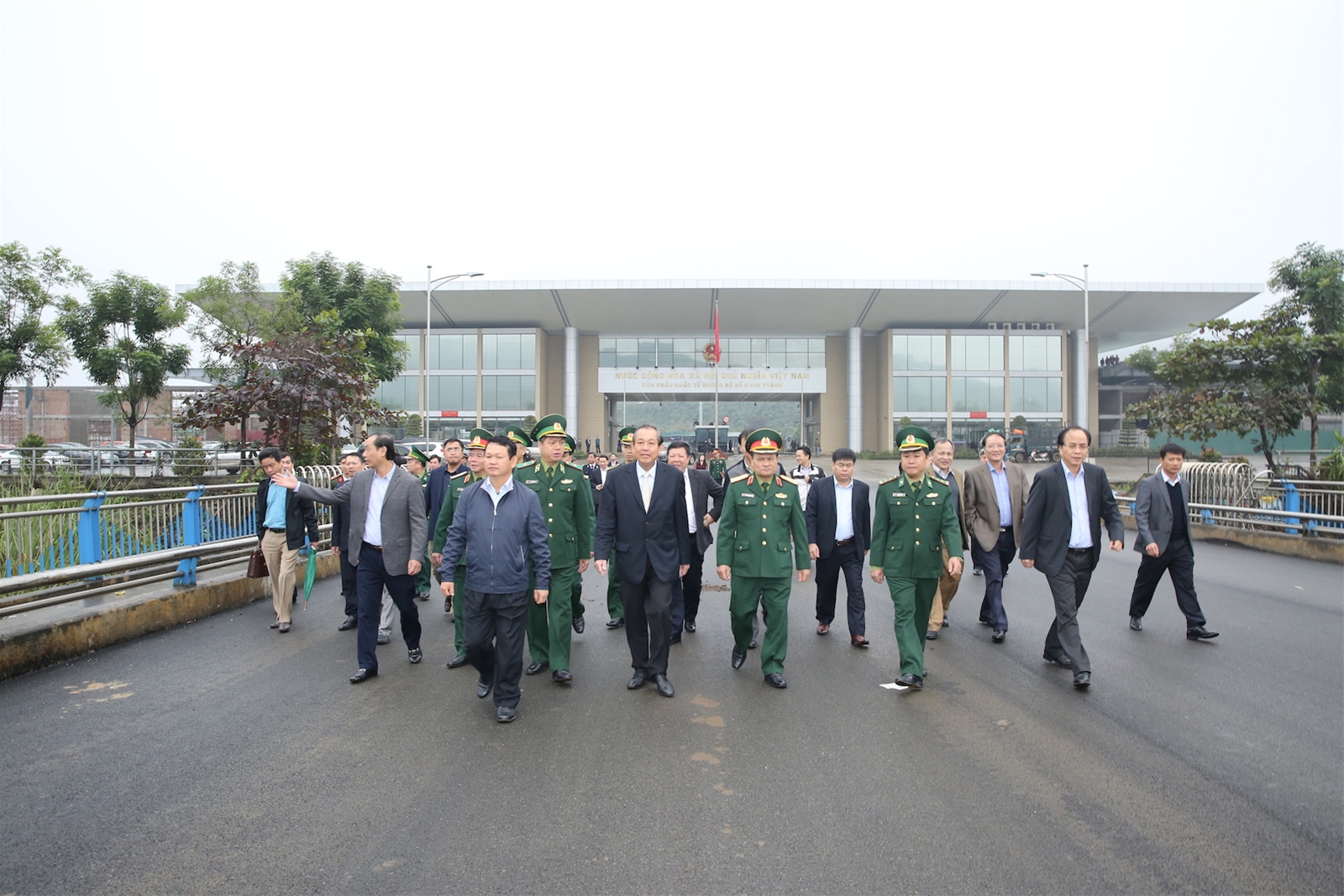 Phó Thủ tướng Thường trực Trương Hòa Bình thị sát công tác chống buôn lậu tại cửa khẩu Kim Thành và Bát Xát. Ảnh: VGP/Lê Sơn