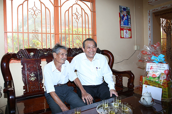 Phó Thủ tướng Trương Hòa Bình thăm một gia đình có công trong huyện Đức Huệ, tỉnh Long An. Ảnh: VGP/Lê Sơn