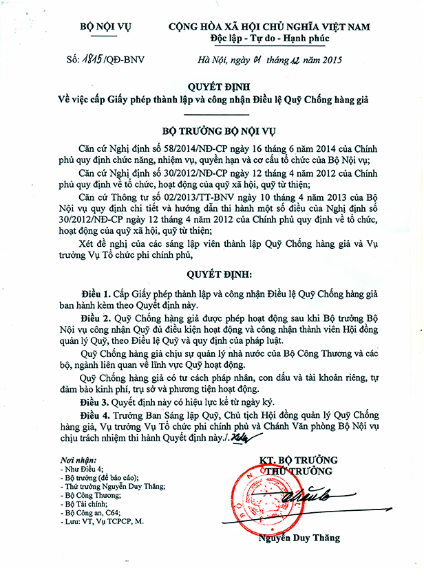 Quyết định thành lập Quỹ Chống Hàng Giả (ACF)