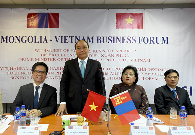 Thủ tướng giới thiệu với các doanh nghiệp Mông Cổ về tiềm năng, thế mạnh của Việt Nam; đồng thời Việt Nam có quan hệ ngoại giao với 185 quốc gia và vùng lãnh thổ, thành viên năng động của 70 tổ chức quốc tế và khu vực, hội nhập sâu rộng vào kinh tế toàn cầu, tham gia 13 hiệp định thương mại tự do, có quan hệ thương mại tự do với 50 nước, trong đó có 20 nước G20. Việt Nam là 1 trong 12 quốc gia tham gia Hiệp định Đối tác xuyên Thái Bình Dương (TPP). Thủ tướng cho rằng, các doanh nghiệp Mông Cổ đặt chân vào thị trường Việt Nam sẽ có cơ hội tiếp cận rộng rãi hơn với thị trường thế giới, thị trường các nước ASEAN.
