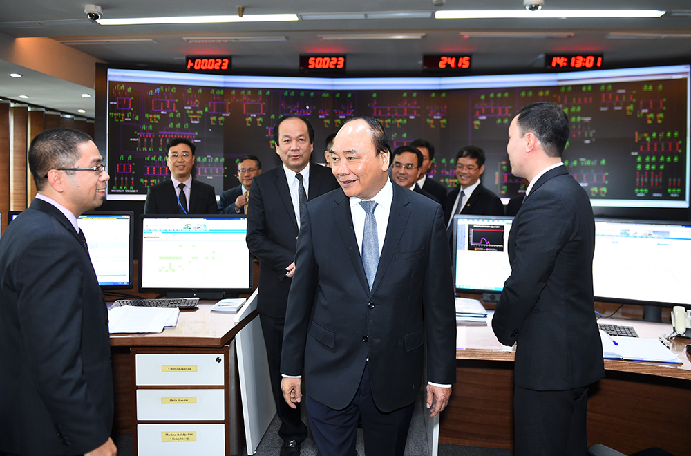 Thủ tướng Nguyễn Xuân Phúc tham quan Trung tâm Điều độ hệ thống điện quốc gia. Ảnh: VGP/Quang Hiếu
