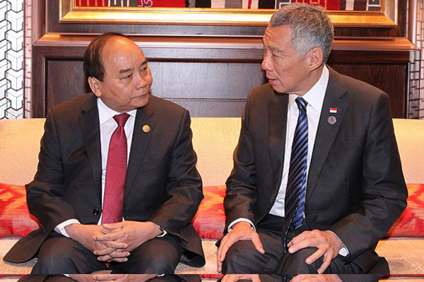 Thủ tướng Nguyễn Xuân Phúc và Thủ tướng Singapore Lý Hiển Long. Ảnh: VGP/Quang Hiếu