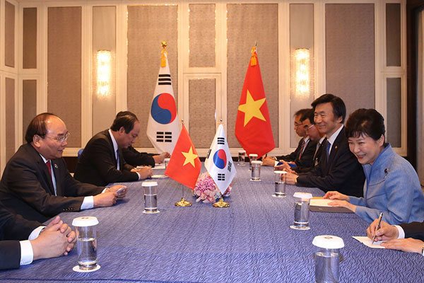Thủ tướng Nguyễn Xuân Phúc gặp Tổng thống Hàn Quốc Park Geun-hye. Ảnh: VGP/Quang Hiếu