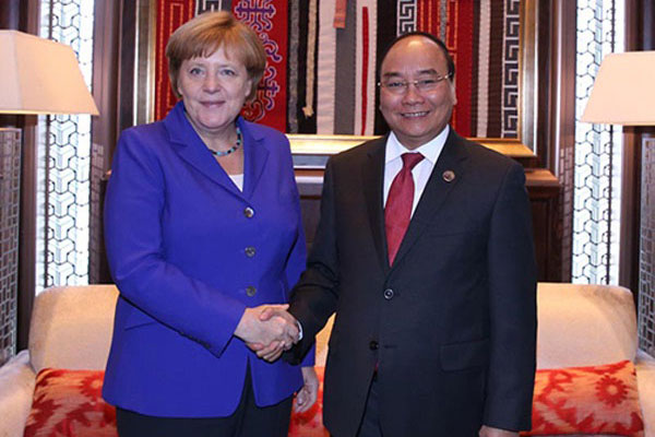 * Tại cuộc hội kiến với Thủ tướng Đức Angela Merkel, hai bên bày tỏ vui mừng trước sự phát triển tích cực của quan hệ Đối tác chiến lược Việt Nam - Đức được thiết lập trong chuyến thăm Việt Nam của Bà Thủ tướng năm 2011. Thủ tướng Nguyễn Xuân Phúc khẳng định nỗ lực đưa quan hệ hai nước lên tầm cao mới và gửi lời mời Thủ tướng Merkel sớm thăm lại Việt Nam.