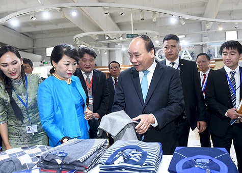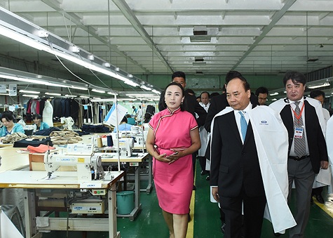 Thủ tướng Nguyễn Xuân Phúc tham quan nhà máy sản xuất len Gobi, Mông Cổ. Ảnh: VGP/Quang Hiếu
