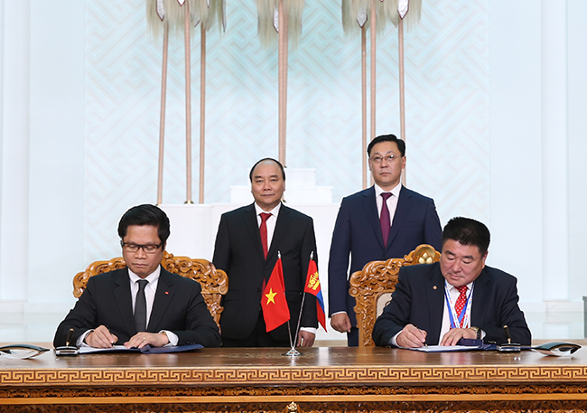 Kết thúc hội đàm, hai Thủ tướng chứng kiến lễ ký Bản thỏa thuận về hợp tác giữa Phòng Thương mại và Công nghiệp Việt Nam và Liên minh giới chủ Mông Cổ, sau đó có cuộc gặp gỡ báo chí chung.