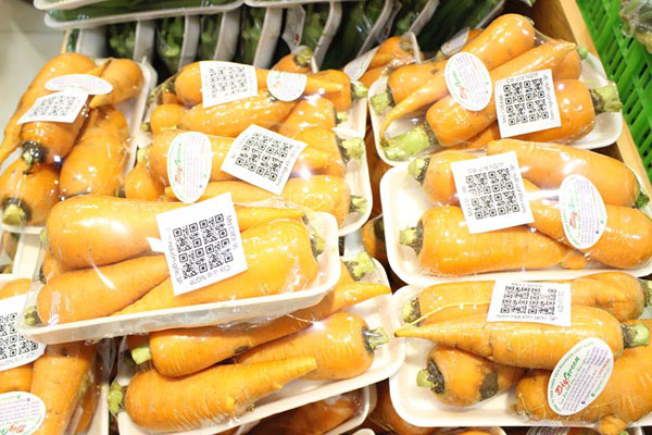 Các sản phẩm rau củ được cấp mã code. Ảnh: Đỗ Hương